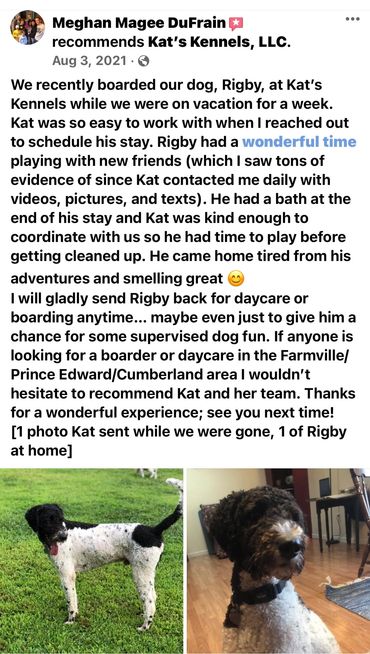 No call/no shows: If you need to cancel any of our services for any reason, please call us or cancel in advance. Because of the number of no call/no-shows. We are starting a non-refundable one-night boarding booking fee, if you keep your appointment, we’ll deducted your booking fee day of pick up.